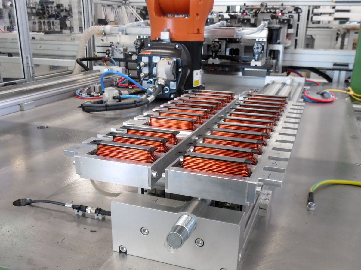 In single-tooth winding, single poles rotate around their own axis while the wire is fed from a needle. The exact positioning of the needle enables the available space to be used optimally.