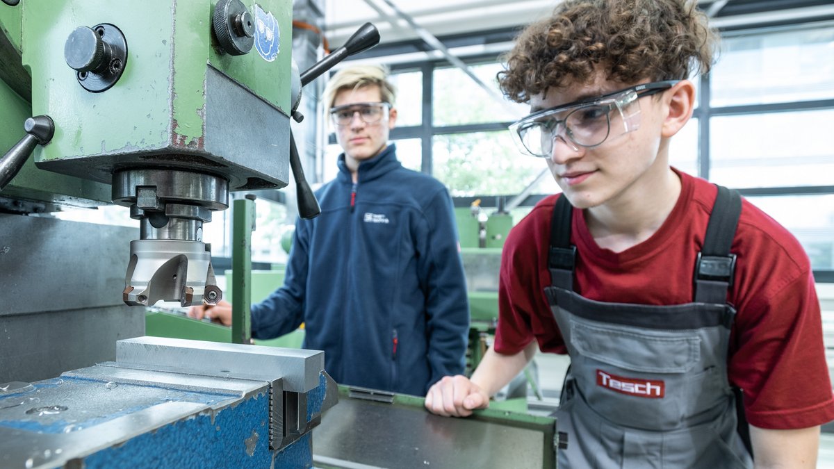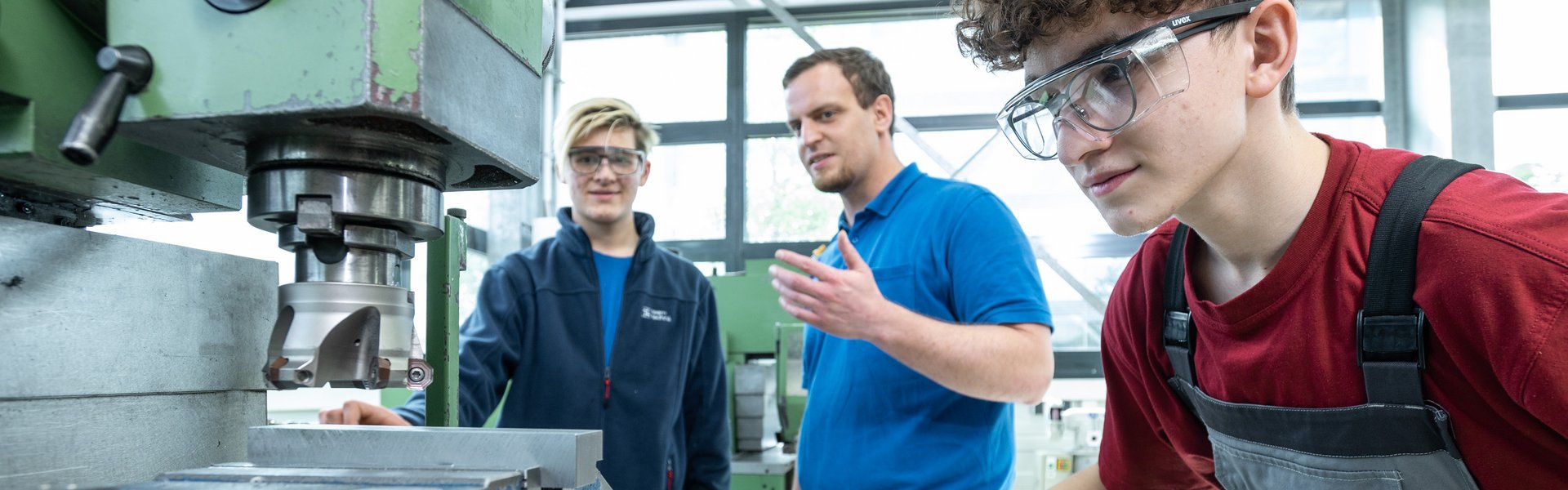 Horizontal and vertical milling is performed on universal milling machines. A comprehensive introduction to milling is dispensed on conventional milling machines. Different tools such as end mills (HSS and TCT), shell end mills and milling cutters with TCT inserts are used and the advantages and disadvantages explained theoretically. Milling strategies are discussed and work plans are drawn up. Simultaneous and up-cut milling are also covered, as well as machine lubrication. Special emphasis is placed on safety at work and well thought-out procedures.