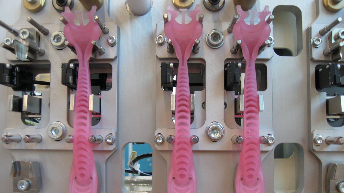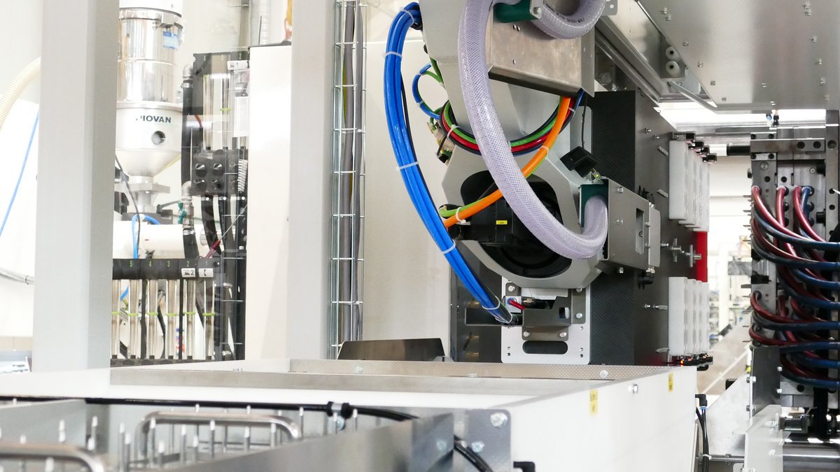 With the HEKUlab automation, a high quantitative output is guaranteed. A prerequisite for this is that the take-out gripper is able to handle und process simultaneously up to 128 cavities from the injection mold.