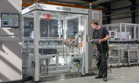 The production system platform can also be extended and scaled flexibly. It can be adjusted for changes in output quantity and varying requirements. We offer turnkey solutions for all required packaging and testing processes, from insulating tube assembly to packaging cells in cartons.