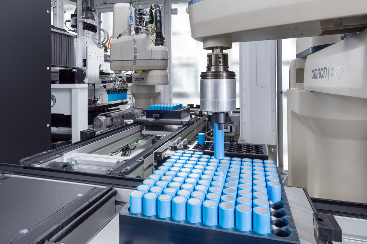 Our assembly and test lines can also be used for battery modules for products like power tools and home storage systems. We provide turnkey solutions with a footprint of only 12 x 6 meters, an output of 7,200 cells per hour and system autonomy of up to 60 minutes.