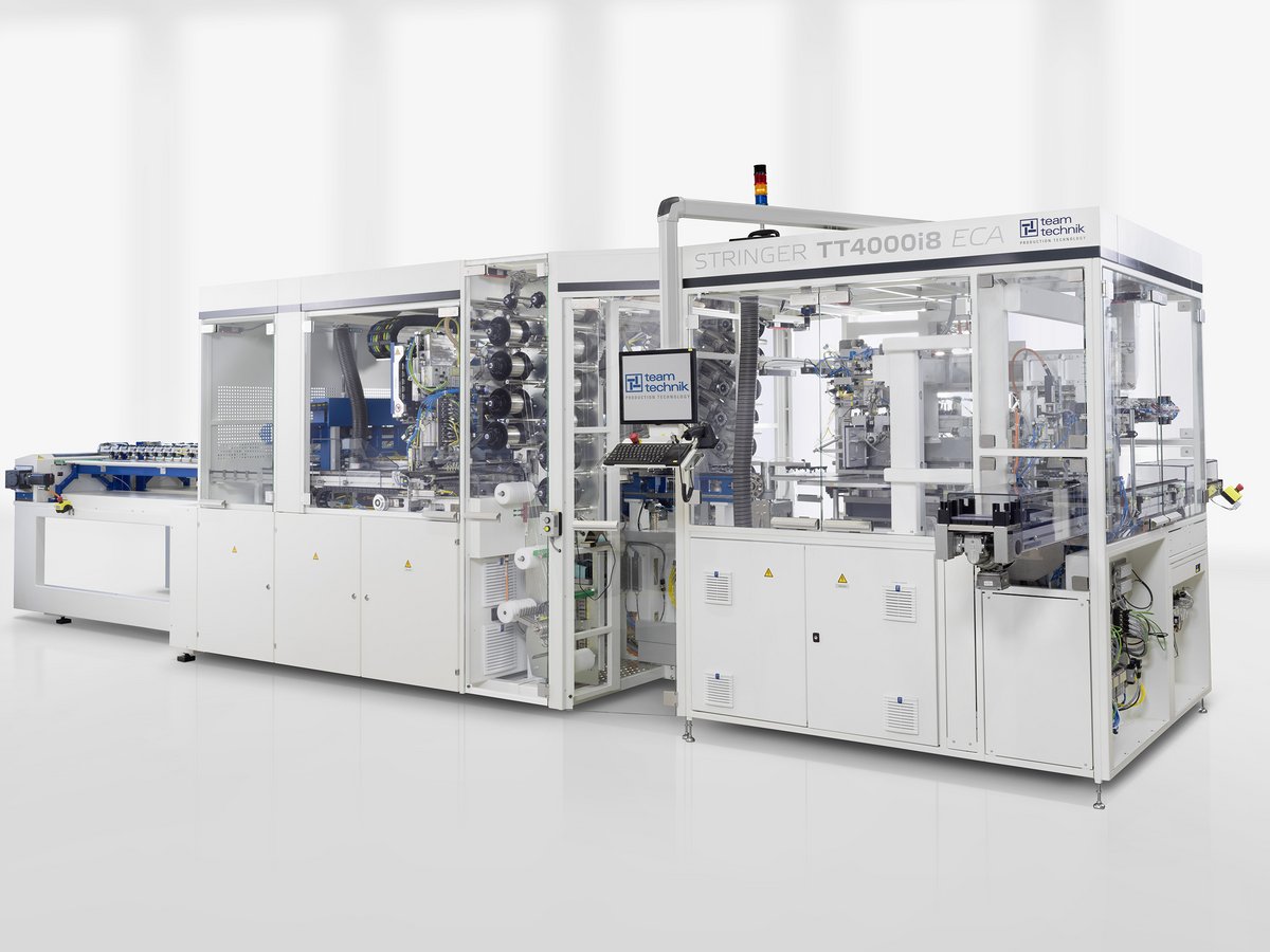 The standardized machine developed by teamtechnik forms the basis for all the BBS "teamtechnik stringers" around the world: the high-output STRINGER TT4200 i8, STRINGER TT2100 i8 and the STRINGER TT4000 i8 ECA, with its new alternative connecting technology. STRINGER TT is synonymous with defined, tested processes and high quality, characteristics which go hand in hand with high availability, high output and low breakage.