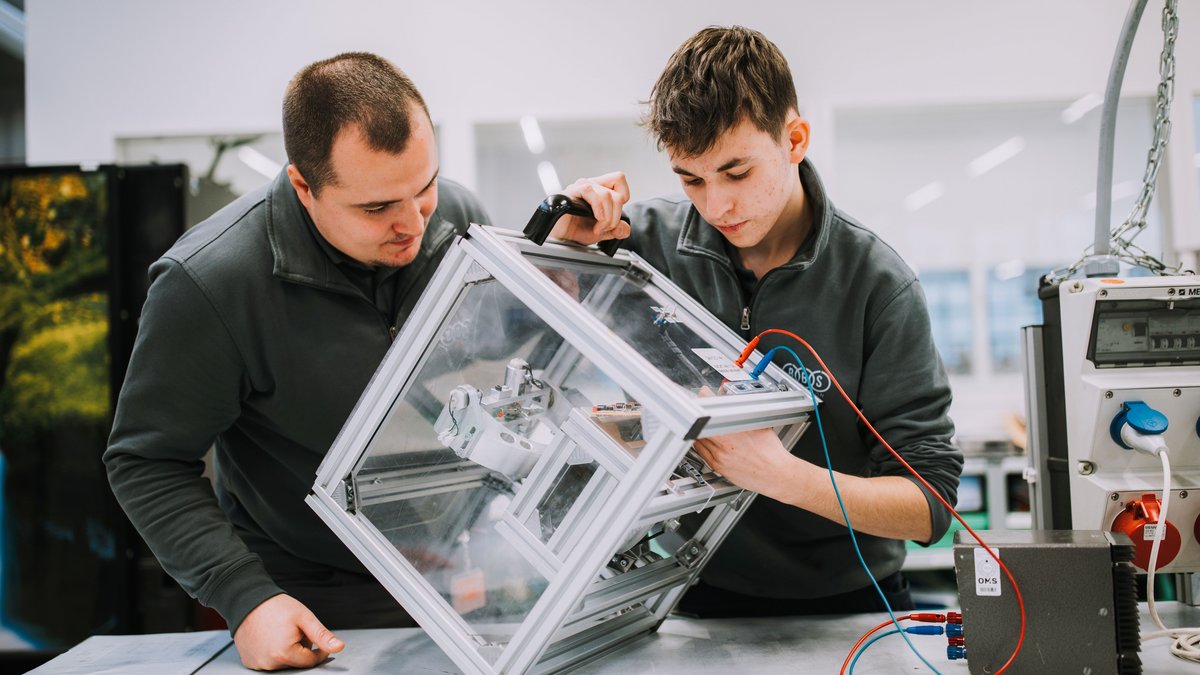 Currently, 127 young people are preparing for their professional careers here. They benefit from uniform training standards and the chance to collaborate in an even larger team. After all, they gain a wide range of insights into two companies at once: At BBS Automation in Freiberg, they learn about special machine construction. This involves manufacturing customer-specific automation solutions, for example for the assembly of electric drives, solar modules, and infusion sets. At Dürr in Bietigheim, apprentices are familiarized with the series production of painting robots.