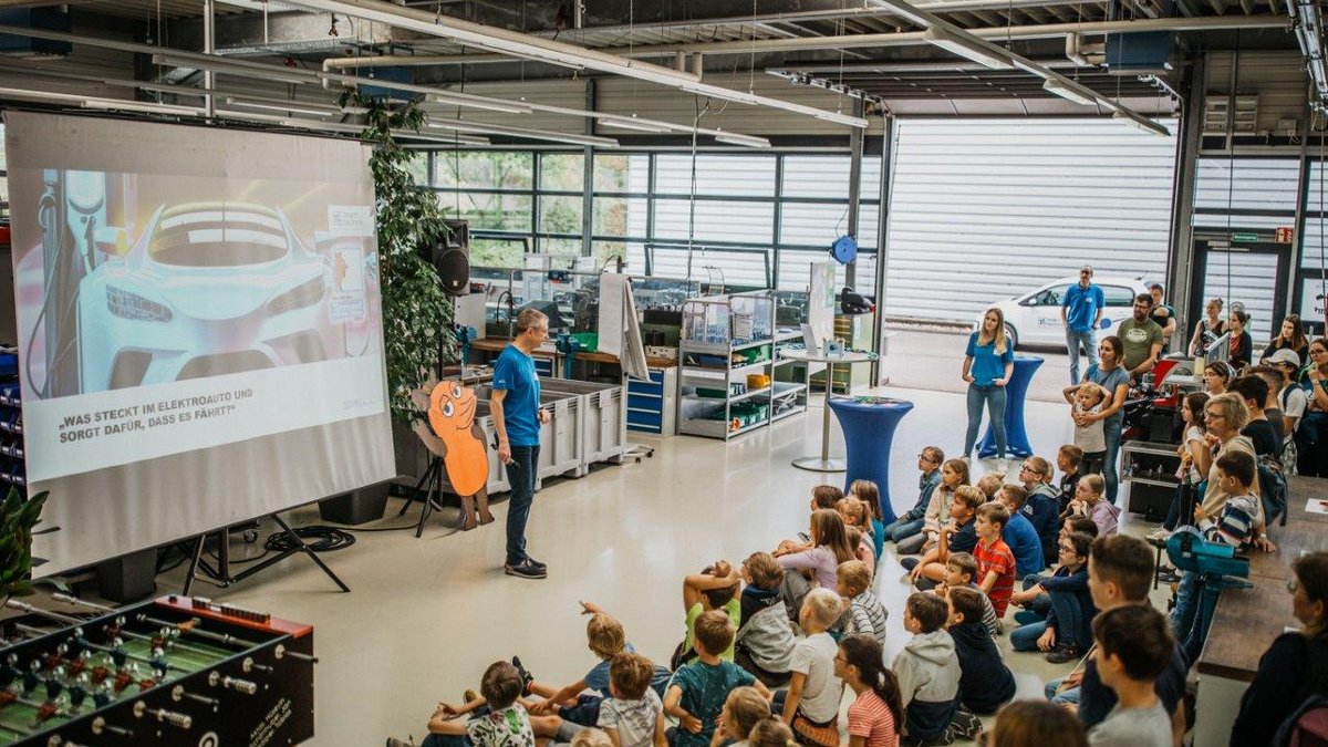 Once again, teamtechnik is one of the more than 600 companies participating in this year's "Opening doors, with the Mouse" day of activities organized by WDR, which are taking place across Germany. On October 3rd every year, the companies involved throw open their doors to show children exactly what they are creating. The visit to the plant in Freiberg was fully booked in a matter of days: more than 50 children and young people aged be-tween 7 and 14 came with their parents and siblings to visit the production halls and the spacious training center. True to the day's slogan, "precious treasures", they were able to investigate everything that goes into building an electric automobile.