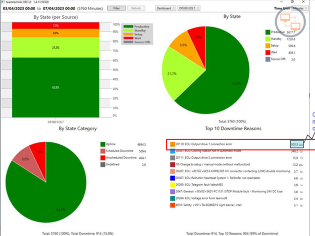 - A total of 5,760 minutes of production time were planned, but 503 minutes were lost due to downtime.