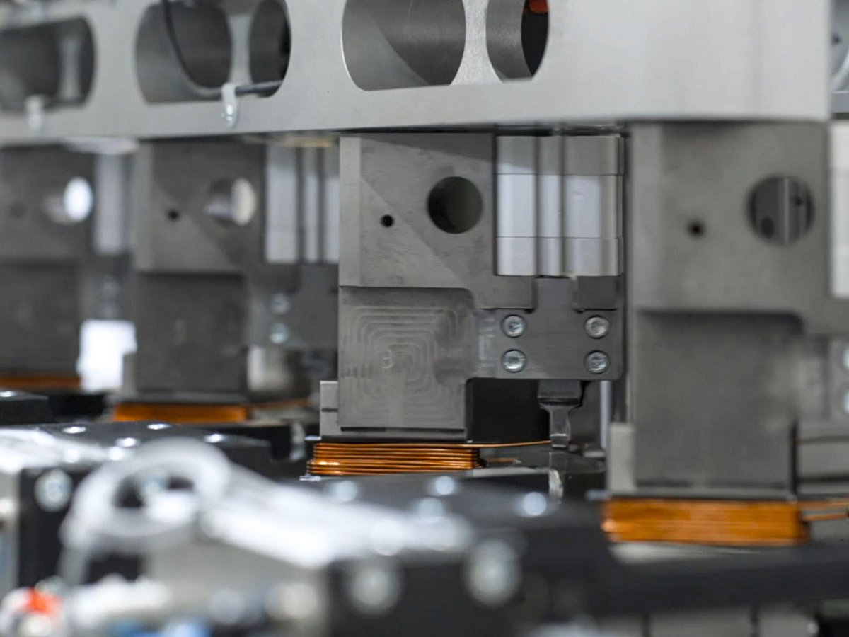 In single-tooth winding, single poles rotate around their own axis while the wire is fed from a needle. The exact positioning of the needle enables the available space to be used optimally.