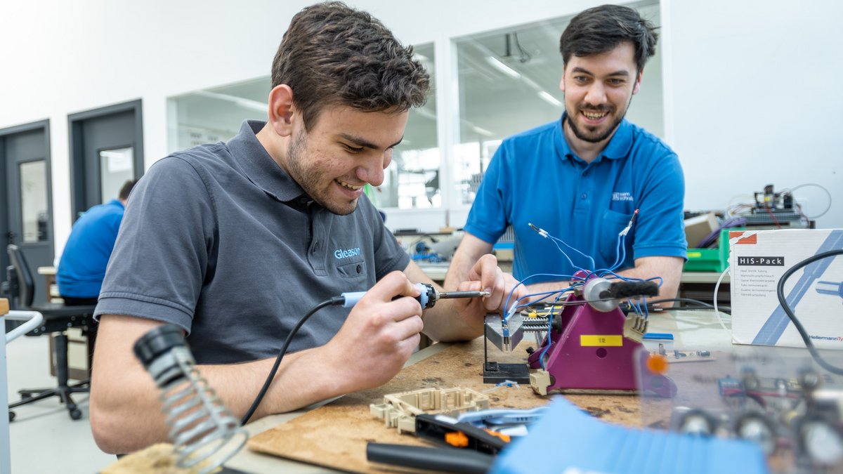 The trainees first receive a specific safety briefing before going on to learn about the functions and structure of various electronic components. The trainees will draw up small circuit diagrams for electronic circuits after being taken through the theoretical foundations and proper procedures. Step by step, the trainees are given the opportunity to work more and more independently, the ultimate goal being to create a circuit board layout with suitable software.