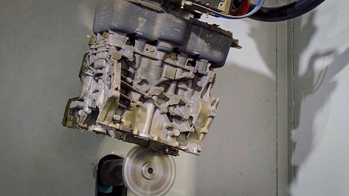 BBS machines for removing burrs from castings are designed so flexibly that different products can be realized. Robots are used to load and unload the machines.
